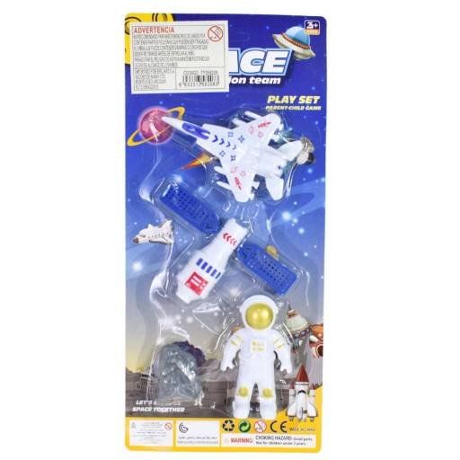 Astronauta con naves espaciales en blíster 31x14cm