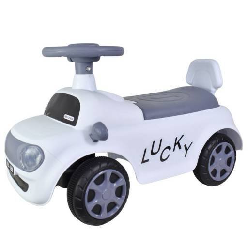 Buggy infantil.Botón con sonido y luces delanteras.Color: blanco. Funcionamiento: 3 pilas AAA (no incluidas).Medidas: largo x ancho 57x26cm.Altura: 35 cm.Material: plástico.